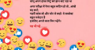टीचर – बेटा, honesty क्या होती है? पप्पू – जब टीचर पेपर चेक कर रही हो और हम कहें – “सारे गलत हैं।” 😜 ***************************************** दोस्त – यार, बीवी भाग गई, अब क्या करेगा? दूसरा – पहले पार्टी दूँगा, फिर खोजूँगा! 😂 ***************************************** गर्लफ्रेंड – मेरे लिए क्या कर सकते हो? बॉयफ्रेंड – मोबाइल चार्ज खत्म हो गया, अब और …