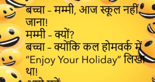 टीचर – मोबाइल का सबसे बड़ा उपयोग क्या है?छात्र – घरवालों को यह बताना कि हम पढ़ रहे हैं! 😅 ************************************* गर्लफ्रेंड – तुम मेरे लिए क्या कर सकते हो?बॉय – व्हाट्सऐप पर 24 घंटे ऑनलाइन रह सकता हूँ! 🤣 ************************************* दोस्त – यार, बीवी बहुत गुस्सा करती है!पप्पू – तो तू साइलेंट मोड ऑन कर ले! 😂 ************************************* पत्नी …