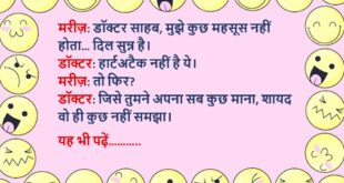मरीज: डॉक्टर साहब, दिल तेज़ धड़कता है, पसीना आता है, हाथ कांपते हैं। डॉक्टर: ये लक्षण तो हार्ट अटैक जैसे लगते हैं! मरीज (शर्माते हुए): नहीं डॉक्टर साहब… वो उससे बात करने जा रहा हूँ। डॉक्टर: अच्छा! तो फिर दिल की दवा नहीं, हिम्मत की गोली चाहिए।😆🤣🤣🤣🤣😝😝😝 ************************************************************************************ मरीज: डॉक्टर साहब, मुझे भूलने की बीमारी हो गई है। डॉक्टर: कब …