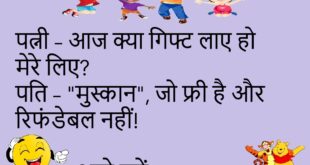 डॉक्टर – तुम्हें क्या तकलीफ है?मरीज़ – डॉक्टर साहब, बीवी की बात सुनते ही बुखार चढ़ जाता है! 😂 ************************************* टीचर – बताओ, सूरज कहाँ उगता है?पप्पू – गूगल कर लो सर, हर दिन अपडेट रहता है! 😆 ************************************* पत्नी – आज क्या गिफ्ट लाए हो मेरे लिए?पति – “मुस्कान”, जो फ्री है और रिफंडेबल नहीं! 😜 ************************************* सास – …