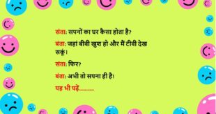 संता: यार, नई नौकरी मिल गई। बंता: वाह! कितनी सैलरी? संता: इतनी कि बीवी खुश हो जाए, पर बॉस गुस्सा कर दे। बंता: फिर? संता: अब हर महीने सैलरी से ज्यादा बीवी का गुस्सा कटता है!😆🤣🤣🤣🤣😝😝😝 ************************************************************************************ डॉक्टर: आपको थोड़ा वॉक करना चाहिए। बंता: ठीक है डॉक्टर साहब, घर में जाकर बीवी से लड़ाई कर लूंगा, उससे ज़्यादा वॉक और …