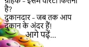 गर्लफ्रेंड – मेरे बिना तुम रह नहीं सकते ना?बॉय – वाईफाई बंद कर दो, पता चल जाएगा! 😆 ************************************* दोस्त – यार, तुम इतने खुश कैसे रहते हो?पप्पू – बीवी का व्हाट्सऐप म्यूट पर है! 😂 ************************************* टीचर – अच्छे बच्चे कभी झूठ नहीं बोलते!छात्र – इसलिए तो मैं औसत हूँ सर! 😅 ************************************* ग्राहक – इसमें वारंटी कितनी है?दुकानदार …
