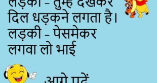 डॉक्टर: क्या पीते हो?मरीज: कभी चाय, कभी कॉफी।डॉक्टर: शराब?मरीज: डॉक्टर साहब, वो “कभी” नहीं — रोज़!😊😊😊😊 ****************************************** गर्लफ्रेंड: तुमने मुझे कब पसंद किया?बॉयफ्रेंड: जब व्हाट्सएप डीपी देखी थी!😊😊😊😊 ****************************************** पप्पू: सर, मेरी कॉपी खो गई।टीचर: तो नई ले लो।पप्पू: लेकिन उसमें तो मेरे झूठे बहाने लिखे थे! 😂 ****************************************** पति: आज तुम्हारा चेहरा इतना चमक रहा है क्यों?पत्नी: मोबाइल की …