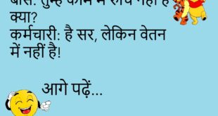टीचर: अगर कोई गलती करे तो क्या करना चाहिए?छात्र: शादी नहीं करनी चाहिए, सर! 😂 ****************************************** डॉक्टर: तुम इतना क्यों मुस्कुरा रहे हो?मरीज: बीवी मायके गई है डॉक्टर साहब! ****************************************** बॉस: तुम्हें काम में रुचि नहीं है क्या?कर्मचारी: है सर, लेकिन वेतन में नहीं है! ****************************************** पत्नी: आज खाना कौन बनाएगा?पति: तुम ऑर्डर करो, मैं पेमेंट कर दूँगा — टीमवर्क! …