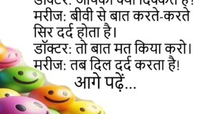 टीचर: बच्चों, बताओ “साइलेंस” का मतलब क्या होता है?पप्पू: जब मोबाइल में नेटवर्क हो और फिर भी बीवी कॉल न करे!😊😊😊 ****************************************** डॉक्टर: आपको क्या तकलीफ़ है?मरीज: बीवी के बिना नींद नहीं आती।डॉक्टर: तो फिर उसे भेज दो, मुझे भी नहीं आती! 😂 ****************************************** बॉस: तुम रोज़ देर से क्यों आते हो?कर्मचारी: सर, मेरी नींद बहुत ईमानदार है — वक्त …