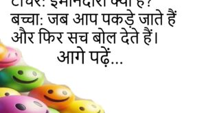 डॉक्टर: बीवी को खुश रखने का इलाज चाहिए?मरीज: डॉक्टर साहब, इलाज नहीं, चमत्कार चाहिए!😊😊😊😊 ****************************************** टीचर: ईमानदारी क्या है?बच्चा: जब आप पकड़े जाते हैं और फिर सच बोल देते हैं।😊😊😊😊 ****************************************** पत्नी: मैं माँ बनने वाली हूँ।पति: मैं भी पापा बनने वाला हूँ!पत्नी: क्या “भी”? 😳 ****************************************** बॉस: तुम देर से क्यों आए?कर्मचारी: सर, सपना पूरा कर रहा था — …