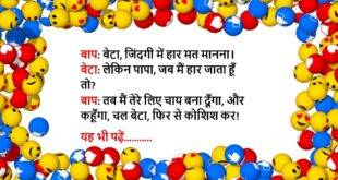 बेटा: पापा, रिज़ल्ट आने वाला है… डर लग रहा है। बाप: बेटा, मुझे भी तब डर लगा था जब तू पैदा होने वाला था… बेटा: फिर क्या हुआ? बाप: जो डर था वही निकला।😆🤣🤣🤣🤣😝😝😝 ************************************************************************************ बाप: बेटा, पढ़ाई कर ले, लाइफ सेट हो जाएगी। बेटा: पापा, आप भी तो बिना पढ़े सेट हो गए थे। बाप: हाँ बेटा, इसलिए तुझे …