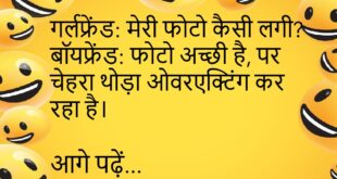 गर्लफ्रेंड: मेरी फोटो कैसी लगी?बॉयफ्रेंड: फोटो अच्छी है, पर चेहरा थोड़ा ओवरएक्टिंग कर रहा है।😊😊😊😊 *********************************** पत्नी: मेरे बिना तुम क्या करोगे?पति: वही जो अब तक नहीं कर पाया – चैन की नींद!😊😊😊😊 *********************************** पप्पू: दिमाग कहां गया?गप्पू: बीवी के साथ शॉपिंग पर।😊😊😊😊 *********************************** टीचर: बेटा, ‘अगर’ से वाक्य बनाओ।छात्र: अगर मैं पास हो गया तो चमत्कार होगा!😊😊😊😊 *********************************** दोस्त: …
