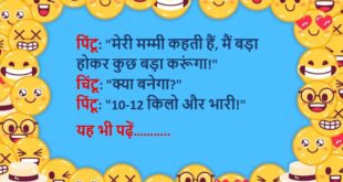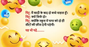 पापा (गुस्से में): तू पढ़ाई में इतना कमजोर क्यों है? चिंटू: क्योंकि आप हमेशा कहते हो – “बेटा, कभी भी दिल से काम करो…” पापा (हैरान): तो? चिंटू: मेरा दिल तो पढ़ाई में है ही नहीं! 😢😆🤣🤣🤣🤣😝😝😝 ************************************************************************************ पिंटू: मैं उसे क्लास 2 से पसंद करता था। चिंटू: फिर? पिंटू: फिर वो मैथ्स की टीचर निकली… और मेरा दिल टूट …