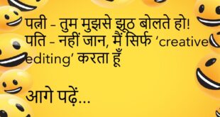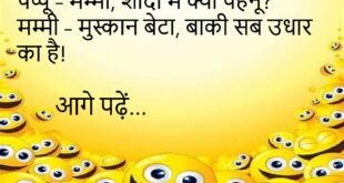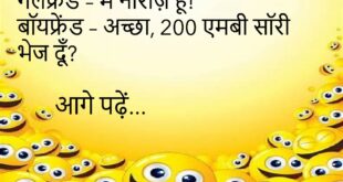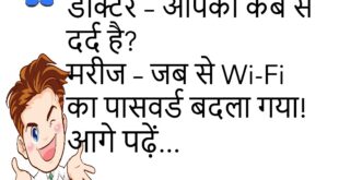 पत्नी – घर में काम कौन करेगा?पति – Alexa, अगर सुन ले तो वही! 😂 ************************************** पप्पू – मैं बड़ा होकर क्या बनूँगा?टीचर – जो Wi-Fi पकड़ ले, वही कामयाब होगा! 😎 ************************************** मम्मी – दूध गिर गया!बेटा – मम्मी, चाय वाले को टैग कर दो! ☕ ************************************** गर्लफ्रेंड – मैं नाराज़ हूँ!बॉयफ्रेंड – अच्छा, 200 एमबी सॉरी भेज दूँ? …
