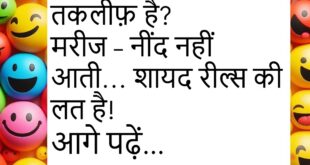 डॉक्टर – दिन में कितनी बार खाना खाते हो?मरीज – फेसबुक पर पांच बार “Eating” अपडेट करता हूँ! 😂 ************************************** बॉस – काम पूरा हुआ?कर्मचारी – नहीं सर, अभी motivation download हो रहा है! 💤 ************************************** दोस्त – तेरा मूड क्यों खराब है?दूसरा – Girlfriend ने “seen” करके छोड़ दिया! 💔 ************************************** पत्नी – मैं मायके जा रही हूँ!पति – …