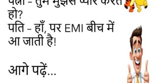 टीचर – बताओ, सबसे बड़ा नदी कौन सा है?पप्पू – वाट्सएप ग्रुप का मैसेज नदी, कभी रुकती ही नहीं! 😜 ************************************** गर्लफ्रेंड – मैं तुमसे नाराज़ हूँ।बॉयफ्रेंड – अच्छा, पहले कारण बताओ या पहले चॉकलेट दूँ? 🍫 ************************************** डॉक्टर – आपकी नींद क्यों नहीं आती?मरीज – क्योंकि सपनों में EMI वाले पीछा करते हैं! 😂 ************************************** पत्नी – आज खाना …