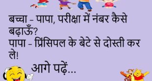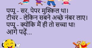पत्नी – आज खाना कौन बनाएगा?पति – जिसने “I love you” कहा था! ❤️😂 *********************************************** बच्चा – पापा, परीक्षा में नंबर कैसे बढ़ाऊँ?पापा – प्रिंसिपल के बेटे से दोस्ती कर ले! 😆 *********************************************** दोस्त – तू इतना खुश क्यों है?पप्पू – बीवी मायके गई है, और फ्रिज में ठंडा पानी है! 🧊🤣 *********************************************** टीचर – पृथ्वी घूमती क्यों है?छात्र – …