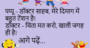 पप्पू – डॉक्टर साहब, मेरे दिमाग में बहुत टेंशन है!डॉक्टर – चिंता मत करो, खाली जगह ही है! 🧠😂 *********************************************** पत्नी – मैं जा रही हूँ मायके!पति – रास्ते में चार्जिंग पॉइंट दिखे तो बता देना, मोबाइल भी भेज दूँगा! ⚡🤣 *********************************************** टीचर – कौन सा पक्षी उड़ नहीं सकता?पप्पू – ब्रॉयलर चिकन, सर! 🍗😂 *********************************************** दोस्त – भाई, तेरी …