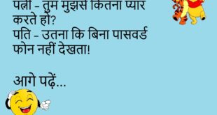 पत्नी – तुम मुझसे कितना प्यार करते हो?पति – उतना कि बिना पासवर्ड फोन नहीं देखता! 😆 ************************************** डॉक्टर – क्या खाया था?मरीज – उम्मीद! और वो भी झूठी! 💔 ************************************** टीचर – बताओ, झूठ कब बोलना चाहिए?छात्र – जब “Are you studying?” पूछा जाए! 😝 ************************************** पत्नी – मैं मायके जा रही हूँ!पति – टिकट लो, राउंड ट्रिप की …