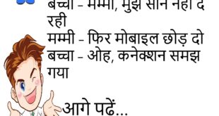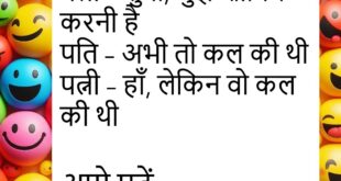 पत्नी – सुनो, मेरे बाल झड़ रहे हैं, क्या करूँ? पति – बाल्टी में नहाया करो, पाइप में प्रेशर ज़्यादा होता है 😂 ******************************************* टीचर – बेटा, बताओ सबसे प्यारा फल कौन सा है? पप्पू – मोबाइल… सब उसी के पीछे भागते हैं 😜 ******************************************* डॉक्टर – तुम्हें क्या हुआ है? मरीज – बीवी की याद नहीं आती, डर लगता …