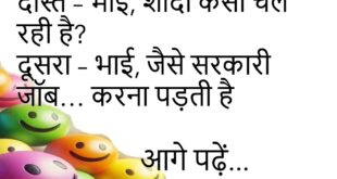 गर्लफ्रेंड – जानू, मैं मोटी लग रही हूँ क्या? बॉयफ्रेंड – लग नहीं रही, हो चुकी हो 😜 ******************************************* बच्चा – टीचर, मेरे मार्क्स क्यों कटे? टीचर – क्योंकि जवाब गलत था बच्चा – पर हैंडराइटिंग तो अच्छी थी ना 😆 ******************************************* दोस्त – शादी कैसी चल रही है? दूसरा – जैसे ऑनलाइन क्लास… समझ नहीं आती, फिर भी करनी …