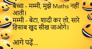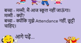 बच्चा – मम्मी, मुझे स्कूल नहीं जाना। मम्मी – क्यों? बच्चा – क्योंकि स्कूल भी मुझे नहीं चाहता, रोज “Absent” बोल देता है।😊😊😊😊 ****************************************** पप्पू – मेरे पास Time Machine है। दोस्त – कहाँ है? पप्पू – Time खा गया, Machine बची है।😊😊😊😊 ****************************************** पत्नी – मैं मायके जा रही हूं। पति – Auto चाहिए या Taxi?😊😊😊😊 ****************************************** बच्चा – …