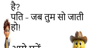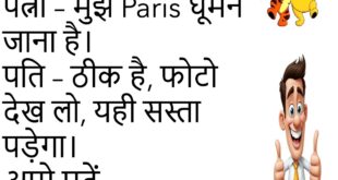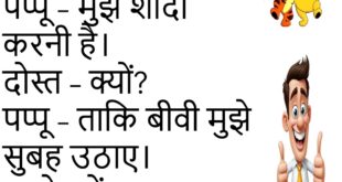 पप्पू – यार, बीवी से लड़ाई हो गई। दोस्त – फिर? पप्पू – अब TV और Remote, दोनों मेरे पास हैं।😊😊😊😊 ****************************************** पति – खाना क्यों नहीं बनाया? पत्नी – Mood नहीं था। पति – तो खाऊं क्या? पत्नी – गुस्सा!😊😊😊😊 ****************************************** बच्चा – पापा, आप Hero क्यों नहीं बने? पापा – क्योंकि Director को Hero चाहिए था, Zero नहीं।😊😊😊😊 …