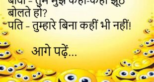 दोस्त – तेरी बीवी इतनी सुंदर है, डर नहीं लगता? पति – क्यों? दोस्त – कोई और ले गया तो? पति – ले जाए, मुझे तो डर है वापस छोड़ ना दे!😊😊😊😊 ****************************************** टीचर – किसके बिना घर अधूरा लगता है? पप्पू – ताले के बिना!😊😊😊😊 ****************************************** बीवी – तुम मुझे कहां-कहां झूठ बोलते हो? पति – तुम्हारे बिना कहीं …