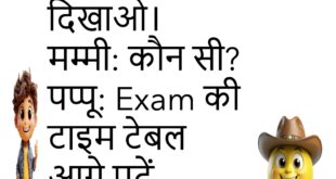 पप्पू: मम्मी, मुझे डरावनी फिल्म दिखाओ।मम्मी: कौन सी?पप्पू: Exam की टाइम टेबल!😊😊😊😊😊 ********************************************** बॉस: तुम ऑफिस देर से क्यों आए?कर्मचारी: सर, गाड़ी में GPS नहीं था, इसलिए मैं घर से बाहर ही घूमता रहा।😊😊😊😊😊 ********************************************** पत्नी: अगर मैं खो जाऊँ तो तुम क्या करोगे?पति: मैं Social Media पर पोस्ट कर दूँगा।पत्नी: क्या लिखोगे?पति: “Lost & Found: Wife Not Returning Calls!”😊😊😊😊😊 …