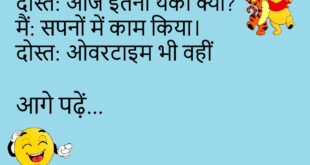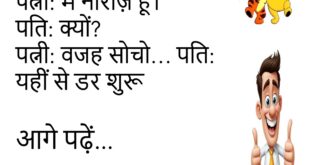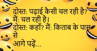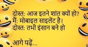 पत्नी: मैं कैसी लग रही हूँ? पति: शानदार। पत्नी: सच? पति: अब बचने का रास्ता नहीं 😄💄 *********************************** टीचर: ध्यान कहाँ है? स्टूडेंट: सर, घर पर। टीचर: दिमाग भी वहीं छोड़ आए हो 🏠😂 *********************************** डॉक्टर: पानी ज़्यादा पीना। मरीज: ठीक है। डॉक्टर: बहाने कम पीना 🚰😆 *********************************** दोस्त: आज पार्टी क्यों? मैं: सैलरी आई है। दोस्त: और आज ही …