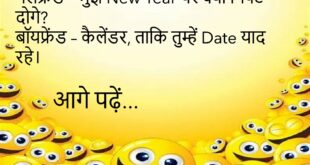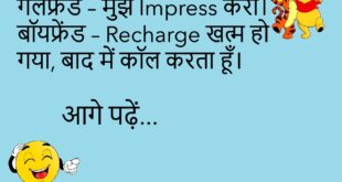 टीचर – Honest किसे कहते हैं?पप्पू – जो Wife से कह दे, “हाँ, तुम्हें मोटापा हो गया है।”😊😊😊😊😊 ********************************************** पत्नी – तुम मुझे बार-बार मम्मी क्यों बुलाते हो?पति – क्योंकि आप रोज़ डाँटती हो।😊😊😊😊😊 ********************************************** बॉस – तुम ऑफिस देर से क्यों आए?कर्मचारी – सर, सपना पूरा कर रहा था… आपने ही कहा था Dream Big!😊😊😊😊😊 ********************************************** गर्लफ्रेंड – तुम …