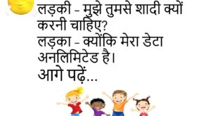 पप्पू – मम्मी, आज स्कूल में सब मुझे गधा कह रहे थे। मम्मी – बेटा, गुस्सा मत कर… घोड़े को भी गधा ही समझ लेते हैं।😊😊😊😊😊 ********************************************** टीचर – बताओ, गंगा कहाँ बहती है? पप्पू – जमीन पर।😊😊😊😊😊 ********************************************** लड़की – मुझे तुमसे शादी क्यों करनी चाहिए? लड़का – क्योंकि मेरा डेटा अनलिमिटेड है।😊😊😊😊😊 ********************************************** डॉक्टर – आपकी बीवी कैसी …