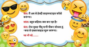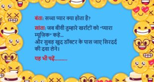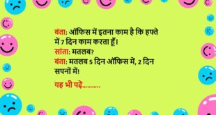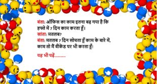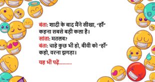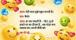 बंता: मैं बीवी के सामने “सही” रहना सीख गया हूँ। सांता: मतलब? बंता: मतलब, सच बोलो लेकिन वो बात ऐसी रखो कि उसे लगे कि वह सही है।😆🤣🤣🤣🤣😝😝😝 ************************************************************************************ सांता: ऑफिस में बॉस ने मुझसे पूछा, “तुम्हारा लक्ष्य क्या है?” बंता: क्या कहा तुमने? सांता: कहा, “जीवन में चैन से जीना।” बंता: और बॉस? सांता: बोला, “यहाँ चैन नहीं, काम …