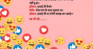 पेशेंट: डॉक्टर साहब, मेरी बीवी मुझसे बहुत प्यार करती है… डॉक्टर: वो कैसे? पेशेंट: जब भी मैं छींकता हूं, वो कहती है — “मर क्यों नहीं जाते तुम!”😆🤣🤣🤣🤣😝😝😝 ************************************************************************************ पेशेंट: डॉक्टर साहब, मेरी आँखों के आगे अंधेरा छा जाता है। डॉक्टर: कितनी बार होता है ये? पेशेंट: जब भी बिजली का बिल आता है। डॉक्टर: तो इलाज बिजली विभाग में …