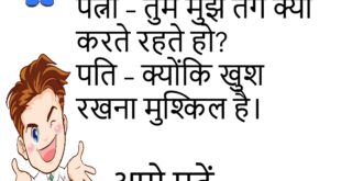पत्नी – तुम मुझे तंग क्यों करते रहते हो? पति – क्योंकि खुश रखना मुश्किल है।😊😊😊😊 ******************************** गर्लफ्रेंड – तुम्हारे दिल में कौन रहता है? बॉयफ्रेंड – गैस।😊😊😊😊 ******************************** टीचर – इतने शोर में क्लास कौन पढ़ेगा? पप्पू – मैडम, माइक्रोफोन मंगवा लो।😊😊😊😊 ******************************** दोस्त – तेरी आंखें लाल क्यों हैं? पप्पू – मोबाइल की वजह से।😊😊😊😊 ******************************** पत्नी – …