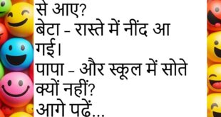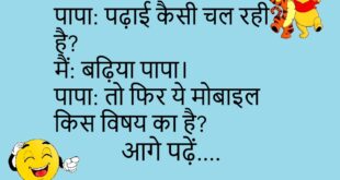 पापा: पढ़ाई कैसी चल रही है? मैं: बढ़िया पापा। पापा: तो फिर ये मोबाइल किस विषय का है? 📱😂 *********************************** टीचर: बताओ सबसे आलसी कौन है? स्टूडेंट: सर, जो अभी भी जवाब सोच रहा है। टीचर: बैठ जाओ, पहचान लिया मैंने 😆📚 *********************************** डॉक्टर: रोज़ एक्सरसाइज करते हो? मरीज: हाँ डॉक्टर साहब। डॉक्टर: फिर ये पेट किसकी मेहनत है? 🤔😂 …