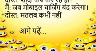 टीचर: इतने सवाल क्यों पूछते हो? स्टूडेंट: सर, गूगल रिचार्ज खत्म हो गया। टीचर: अगली बार ऑफलाइन आना 😆📴 *********************************** दोस्त: आज इतना थका क्यों है? मैं: नींद से लड़ाई हो गई। दोस्त: कौन जीता? मैं: नींद 😜 *********************************** पापा: मोबाइल चार्ज क्यों नहीं है? मैं: पापा, बैटरी भी इंसान है। पापा: आराम बहुत कर लिया उसने 😂🔋 *********************************** पापा: …