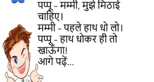 दोस्त – तुम्हारा घर कहाँ है?दोस्त – पास ही है।दोस्त – पास से भी दूर क्यों दिखता है? 🏡 ******************************************* बच्चा – मम्मी मुझे चॉकलेट दो।मम्मी – पहले सब्जी खा लो।बच्चा – सब्जी में मिठास कहाँ से आएगी? 🍫 ******************************************* पप्पू – मम्मी, मुझे नई जूते चाहिए।मम्मी – पुराने जूते क्यों नहीं पहनते?पप्पू – क्योंकि वो स्टाइल में नहीं हैं। …