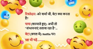 पापा: बेटा, चाय बनाना सीख ले, ज़िंदगी आसान हो जाएगी। बेटा: पापा, आप भी कभी चाय बनाना सीखे थे? पापा (गहरी सांस लेकर): हां बेटा, जब तेरी मम्मी पहली बार मायके गई थी… उस दिन मैं समझा, प्यार से ज्यादा ज़रूरी चाय होती है!😆🤣🤣🤣🤣😝😝😝 ************************************************************************************ पापा: रिजल्ट कैसा आया? बेटा: बस पापा, पास हो गया, ऊपर वाले की कृपा है। …