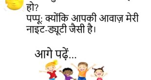 पति: तुम्हारे नखरे कम नहीं हो रहे।पत्नी: अरे तो क्या फैक्ट्री में बनाकर लाई हूँ?😊😊😊😊😊 ******************************************* डॉक्टर: दवा समय पर लेना।संता: जी डॉक्टर साहब, लेकिन टाइम पास के लिए क्या लूँ?😊😊😊😊😊 ******************************************* पत्नी: मैं तुम्हें छोड़कर चली गई तो?पति: तो फिर मैं सो जाऊँगा चैन की नींद!😊😊😊😊😊 ******************************************* बॉस: ऑफिस में देर से क्यों आए?कर्मचारी: सर, सपना देख रहा था …