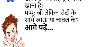 पप्पू: शादी करनी है, दुल्हन चाहिए सुंदर, घर में अकेली हो। दोस्त: भूतनी से कर ले फिर।😊😊😊😊😊 ******************************************* पप्पू: मैं बहुत टेंशन में हूं। दोस्त: क्यों? पप्पू: गर्लफ्रेंड बोल रही है, “तू बहुत अच्छा है, तू deserve नहीं करता मुझे!”😊😊😊😊😊 ******************************************* पप्पू – माँ मुझे शादी नहीं करनी! माँ – बेटा क्यों? पप्पू – क्योंकि बीवी भी मम्मी जैसी होगी, …