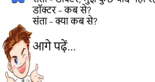 संता – यार, बीवी गुस्सा होकर घर छोड़कर चली गई। बंता – फिर? संता – फिर? बिजली का बिल आधा आ गया।😊😊😊😊 ************************************* पति – तुम हर बात पर नाराज़ क्यों हो जाती हो? पत्नी – क्योंकि गुस्सा करना ही मेरी फिटनेस का राज़ है।😊😊😊😊 ************************************* दोस्त – भाई, पेट क्यों बढ़ रहा है? दूसरा – खुशियाँ समा नहीं रही …