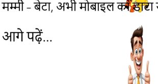 बच्चा – मम्मी, चॉकलेट चाहिए।मम्मी – नहीं।बच्चा – अगर नहीं दी तो रो दूँगा।मम्मी – अगर दे दी तो?बच्चा – फिर खाकर रो दूँगा।😊😊😊😊 *********************************************** डॉक्टर – आपको कैसी दवा दूँ?मरीज – ऐसी जो बीवी के सवालों का जवाब दे सके।😊😊😊😊 *********************************************** पत्नी – मैं मम्मी के घर जा रही हूँ।पति – जल्दी आ जाना।पत्नी – क्यों?पति – नहीं तो …