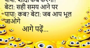 डॉक्टर: शराब कितनी पीते हो? मरीज: सिर्फ जरूरत में डॉक्टर: जरूरत कब? मरीज: रोज 😜 *********************************************** टीचर: मोबाइल क्यों लाए? स्टूडेंट: ज्ञान के लिए टीचर: बाहर जाओ! स्टूडेंट: ज्ञान बाहर ही है 😆 *********************************************** दोस्त: आज बहुत खुश लग रहा है मैं: हां दोस्त: कारण? मैं: आज सोमवार नहीं है 😂 *********************************************** पापा: शादी कब करेगा? बेटा: सही समय आने …