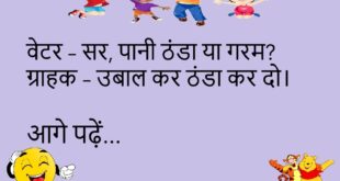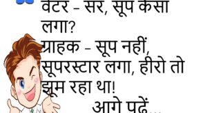 वेटर – सर, सूप कैसा लगा? ग्राहक – सूप नहीं, सूपरस्टार लगा, हीरो तो झूम रहा था!😊😊😊😊 *********************************************** संता – मुझे डर लगता है कि कहीं मेरी बीवी मुझे छोड़ न दे। बंता – भाई, तू खुशकिस्मत होगा, हमें तो छोड़ने का टाइम ही नहीं मिलता।😊😊😊😊 *********************************************** बच्चा – मम्मी, दूध क्यों उबालते हो? मम्मी – ताकि उसमें से कीटाणु …