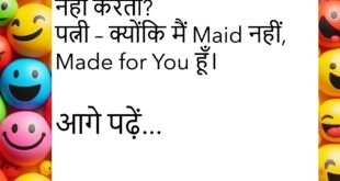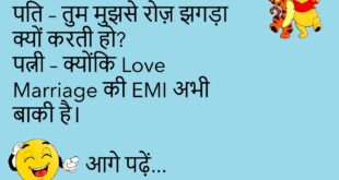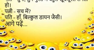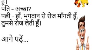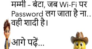 पत्नी – सुनो जी, मैं तुम्हें छोड़ दूँगी।पति – पक्का? 😲पत्नी – हाँ, बस Market तक, गाड़ी खराब है।😊😊😊😊😊 ********************************************** पप्पू – मम्मी, मैं बड़ा होकर IAS बनूँगा।मम्मी – पहले पास तो हो जा बेटा, Attendance भी फेल है तेरी।😊😊😊😊😊 ********************************************** बॉस – काम पूरा हुआ या नहीं?कर्मचारी – सर, Wi-Fi नहीं चल रहा था।बॉस – तो?कर्मचारी – तो काम …