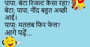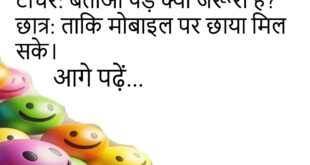 डॉक्टर: क्या तकलीफ है?मरीज: नींद बहुत आती है।डॉक्टर: तो मोबाइल दूर रखो, दवा की जरूरत नहीं 😴 ***************************************पत्नी: सुनो, मैं मायके जा रही हूँ।पति: ठीक है, सब्ज़ी लाते वक्त धनिया ले आना।पत्नी: मतलब मैं सब्ज़ी वाली हूँ? 😠 ***************************************टीचर: बताओ सबसे तेज चीज़ क्या है?स्टूडेंट: दिमाग।टीचर: कैसे?स्टूडेंट: सवाल सुनते ही बंद हो जाता है 🤯 ***************************************दोस्त: भाई आज बहुत खुश …