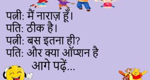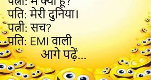 पत्नी: मैं रूठ जाऊँ तो?पति: GPS ऑन कर दूँगा।पत्नी: क्यों?पति: ढूंढने के लिए 😄 ***************************************डॉक्टर: शराब पीते हो?मरीज: सिर्फ त्योहार पर।डॉक्टर: कौन सा?मरीज: रोज़ 😆 ***************************************पापा: मोबाइल क्यों हाथ में है?बेटा: पढ़ाई कर रहा हूँ।पापा: कौन सा सब्जेक्ट?बेटा: ऑनलाइन 😎 ***************************************दोस्त: तू इतना शांत क्यों रहता है?मैं: अंदर तूफान है।दोस्त: फिर बाहर क्या है?मैं: नींद 😴 ***************************************पत्नी: मैं क्या हूँ?पति: …