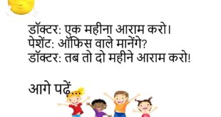 डॉक्टर: क्या तकलीफ है? मरीज: बीवी से परेशान हूं! डॉक्टर: ये बीमारी तो मैं खुद झेल रहा हूं, अगला प्लीज़!😂😂😂😂😂 ********************************* टीचर: बताओ, सबसे मेहनती अंग कौन सा है? बच्चा: जी, जीभ… हर समय हिलती रहती है!😂😂😂😂😂 ********************************* पप्पू: मम्मी, मैं बड़ा होकर शादी करूंगा। मम्मी: शर्म नहीं आती! पप्पू: पर आप भी तो पापा से शादी करके फंसी हो!😂😂😂😂😂 …