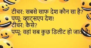 टीचर: बताओ, आलस किसे कहते हैं? बच्चा: जो अभी मुझे जवाब देने में हो रहा है!😂😂😂😂😂 ********************************* पत्नी: सुनिए, मैं मायके जा रही हूं। पति: ठीक है, रास्ते में फोन कर लेना… ताकि मैं खुशी मना सकूं!😂😂😂😂😂 ********************************* बॉस: इतनी देर से क्यों आए? कर्मचारी: सपने में काम कर रहा था… थक गया हूं!😂😂😂😂😂 ********************************* पप्पू: पापा, मोबाइल दो! पापा: …