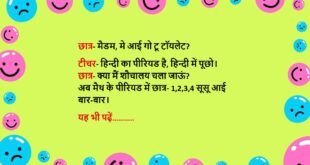 टीचर: बताओ सूर्य की रोशनी कितनी तेज़ होती है?छात्र: सर, मोबाइल की फ्लैश की तरह!😊😊😊😊 *************************************** पप्पू: मम्मी, मुझे नींद नहीं आ रही।मम्मी: मोबाइल रख, रात हो गई है।😊😊😊😊 *************************************** बॉस: रिपोर्ट समय पर क्यों नहीं भेजी?कर्मचारी: सर, फाइल अभी भी सो रही थी।😊😊😊😊 *************************************** दोस्त: तेरे बाल ऐसे क्यों हैं?पप्पू: सर, नया हेयर स्टाइल है—स्ट्रीमिंग मोड में!😊😊😊😊 *************************************** पप्पू: …