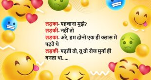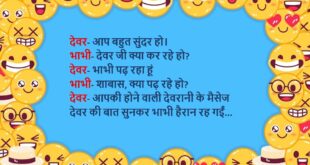 भोजपुरी स्टाइल में बात करते लड़का-लड़की लड़का- का हो रानी, का हाल बा? लड़की- के बोलत बा? लड़का- हम तोहरा आसिक बोल तानी लड़की- अरे, हमार नंबर कहां से पवले रे? लड़का- पब्लिक सुलभ शौचालय में केहू लिखले रहल त हम हू नोट कर लेली….😆🤣🤣🤣🤣😝😝😝 ************************************************************************************ व्हाट्सएप पर लड़की के रिप्लाई ना देने से आहत एक लड़के ने लिखा यूं …