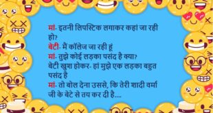 बेटा- मां, मैं एक दिन बहुत बड़ा आदमी बनूंगा,आपकी झोली खुशियों से भर दूंगा मां- पहले ये बोतलें भरकर फ्रिज में रख नालायक…..😆🤣🤣🤣🤣😝😝😝 ************************************************************************************ एक लड़का रात को देर से घर लौटा मां- कहां से आ रहा है? लड़का- कैबरे डांस देखने गया था मां- हे भगवान, तूने कोई ऐसी चीज तो नहीं देखी जो तुझे नहीं देखनी चाहिए थी? …