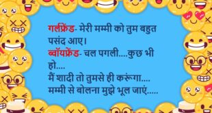 गोलू लड़की देखने गया लड़की ने गोलू से अकेले मे पूछा- तुम्हे खाने में क्या-क्या पसंद है? गोलू ने लंबी-चौड़ी लिस्ट बोल दी लड़की (लिस्ट सुनने के बाद)- इनमे से आप क्या-क्या बना लेते हो? गोलू- सबकुछ लड़की- शादी पक्की….😆🤣🤣🤣🤣😝😝😝 ************************************************************************************ एक बाबा ने घर के अंदर आवाज लगाई- बहन रोटी दे दो, बाबा भूखा है अंदर से आवाज आई- …